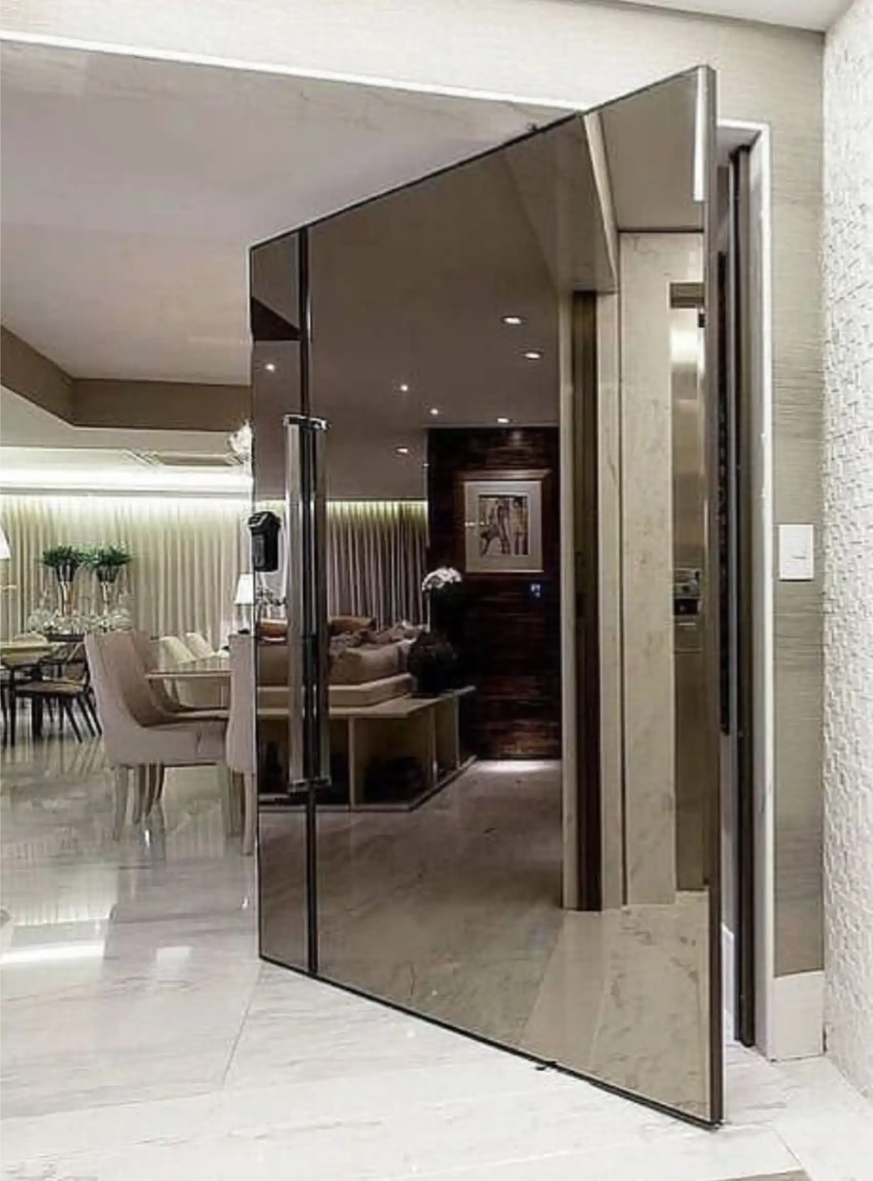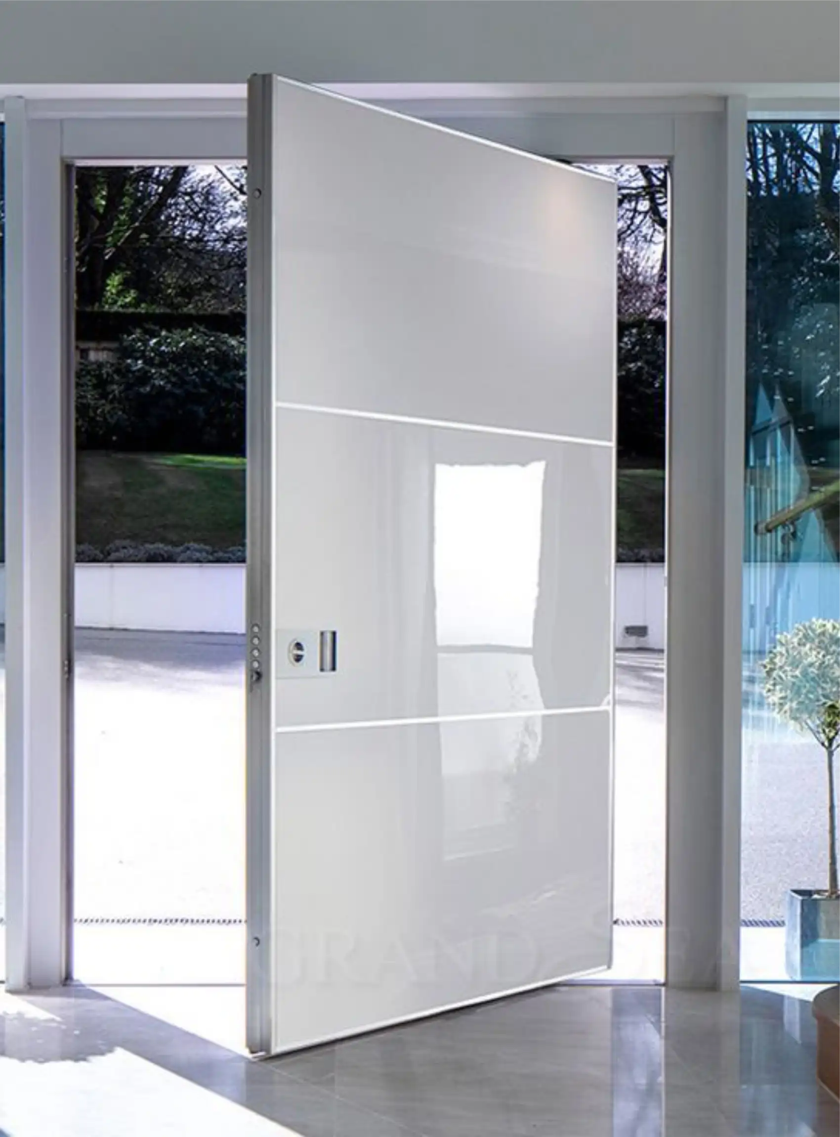 درب ورودی پیوت با فریم آلومینیومی، محصولی مدرن و مقاوم با رویه شیشه، سنگ یا لمینیت است. این مدل با طراحی پیوت، حرکت نرم و ایمنی بالا ارائه میدهد و مناسب ورودی ساختمانهای مسکونی و اداری لوکس است.