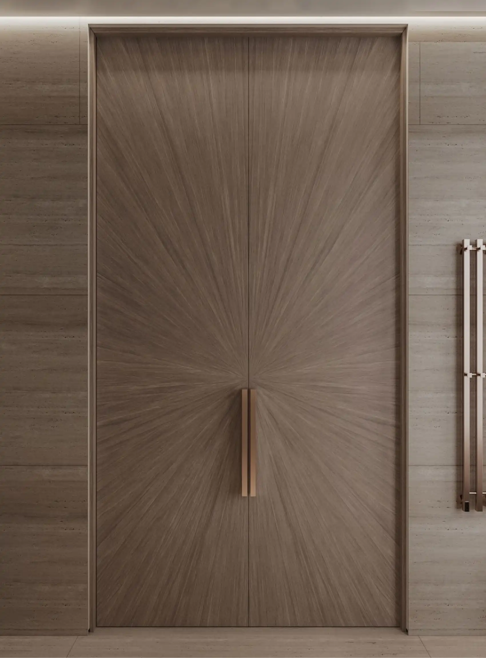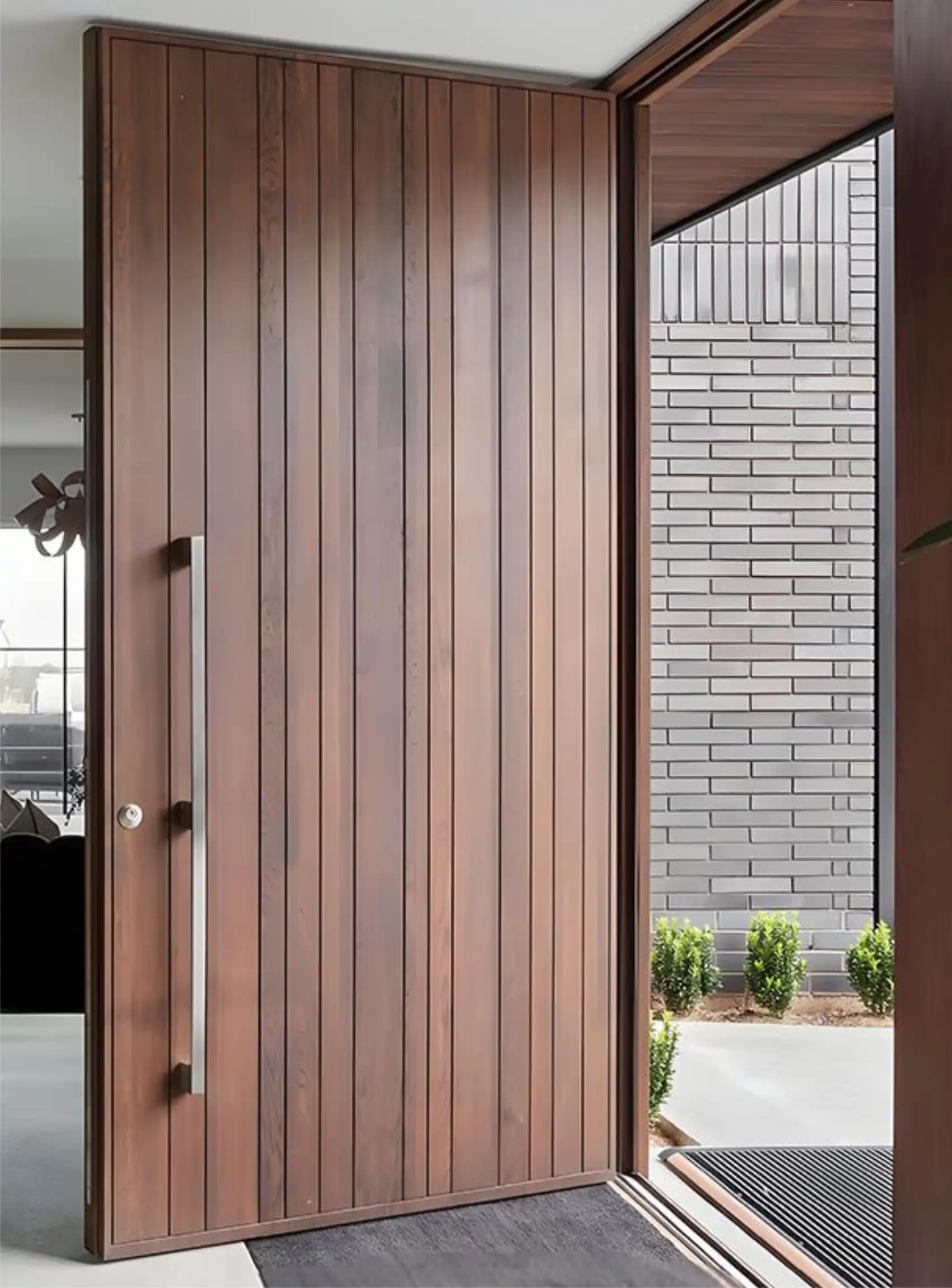 درب ورودی ایمنی با روکش چوب طبیعی، ترکیبی از امنیت، دوام و زیبایی چوب واقعی ارائه میدهد. مناسب ساختمانهای مسکونی و اداری که طراحی لوکس و کیفیت چوب اهمیت دارد. رویه چوبی شامل بلوط، گردو، راش و ملچ است.